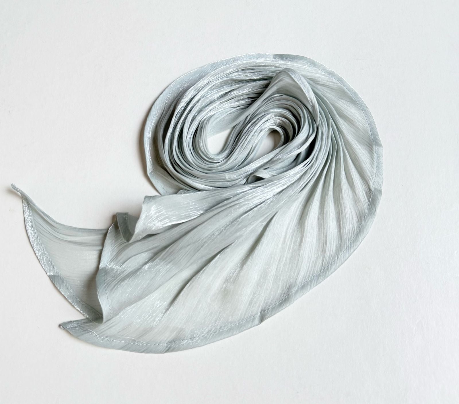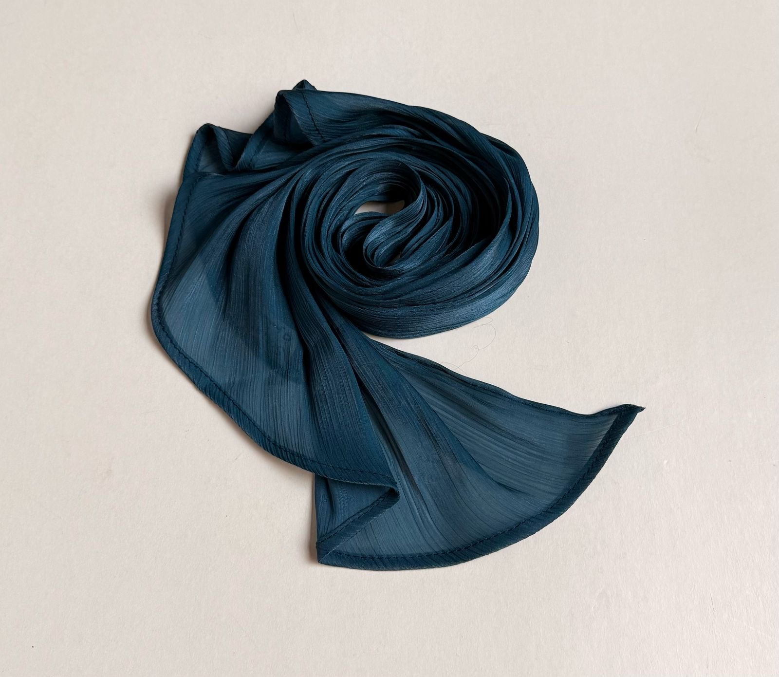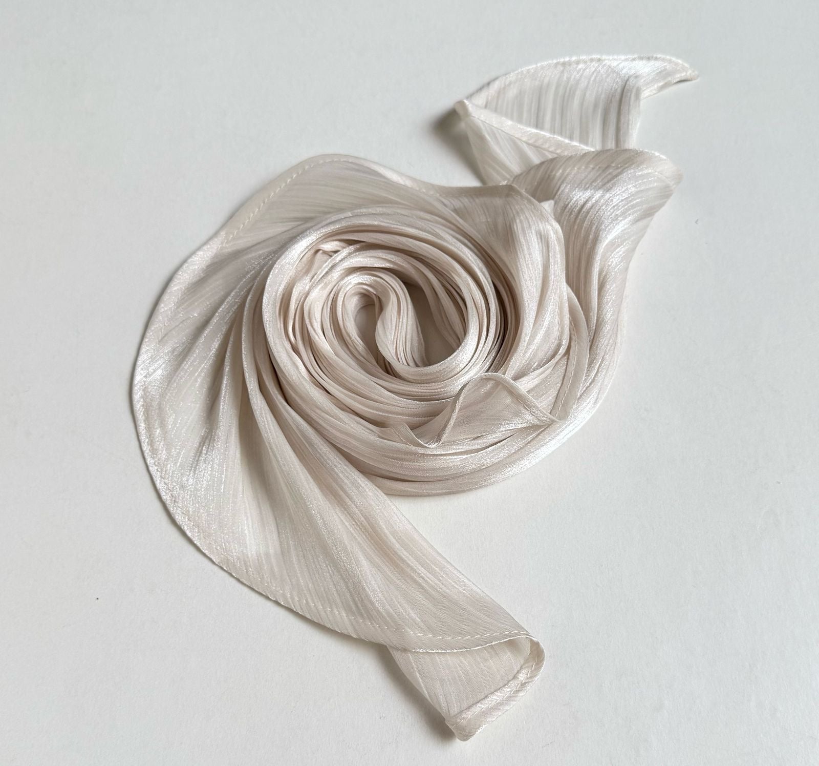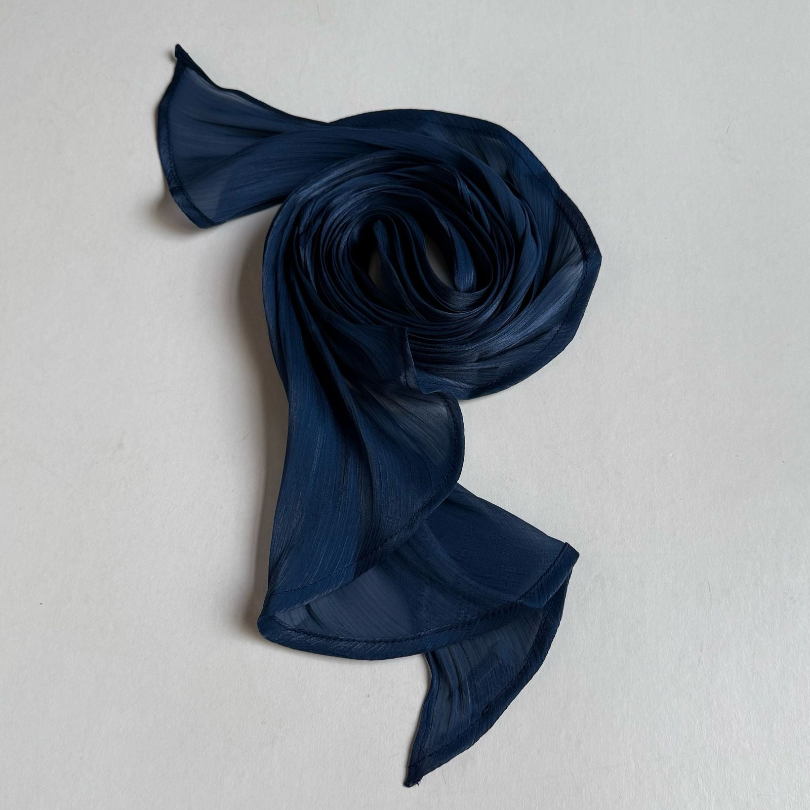 "Introducing the Alma Tuckn Scarf: a stylish and versatile accessory crafted from soft, crinkled chiffon material. This small, elegant scarf is perfect for tucking in with your afternoon and evening outfits, adding a touch of sophistication and giving you a flawless look for any occasion."