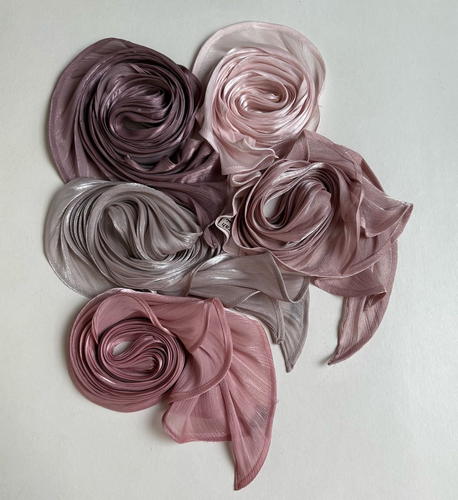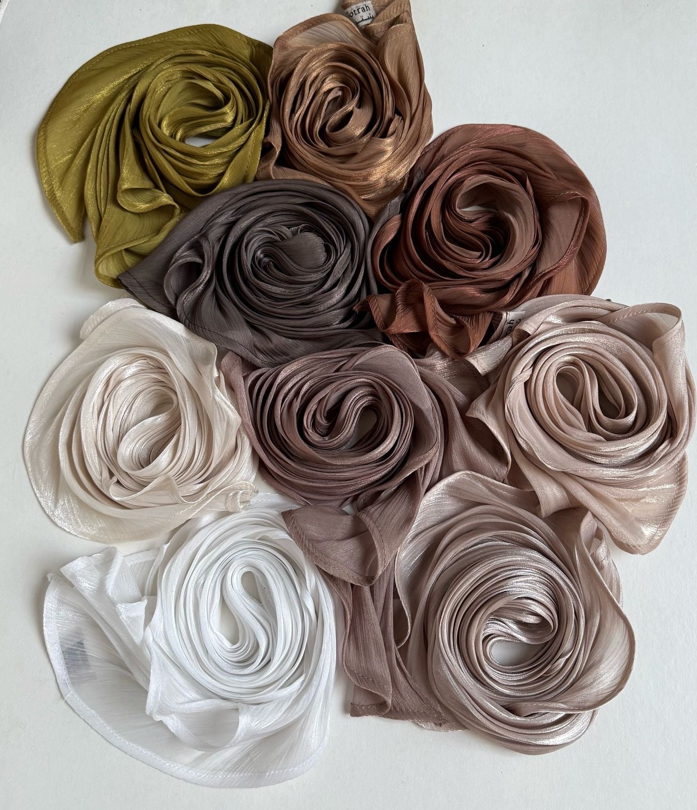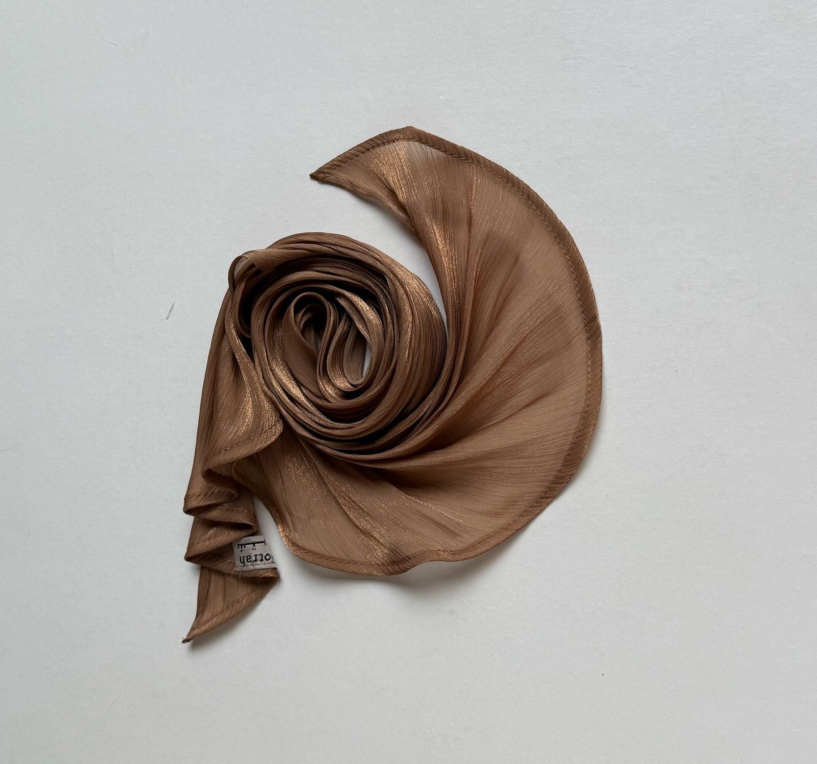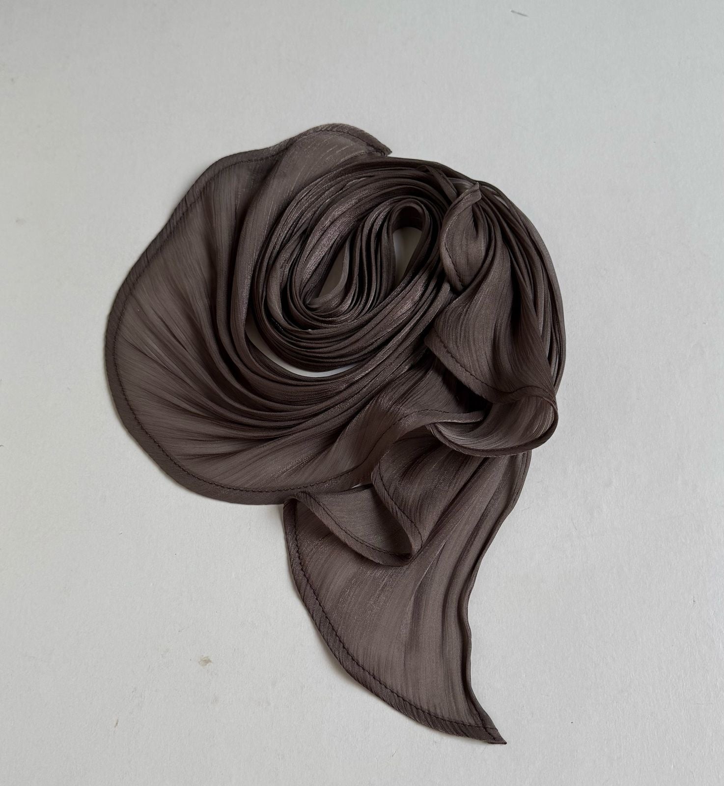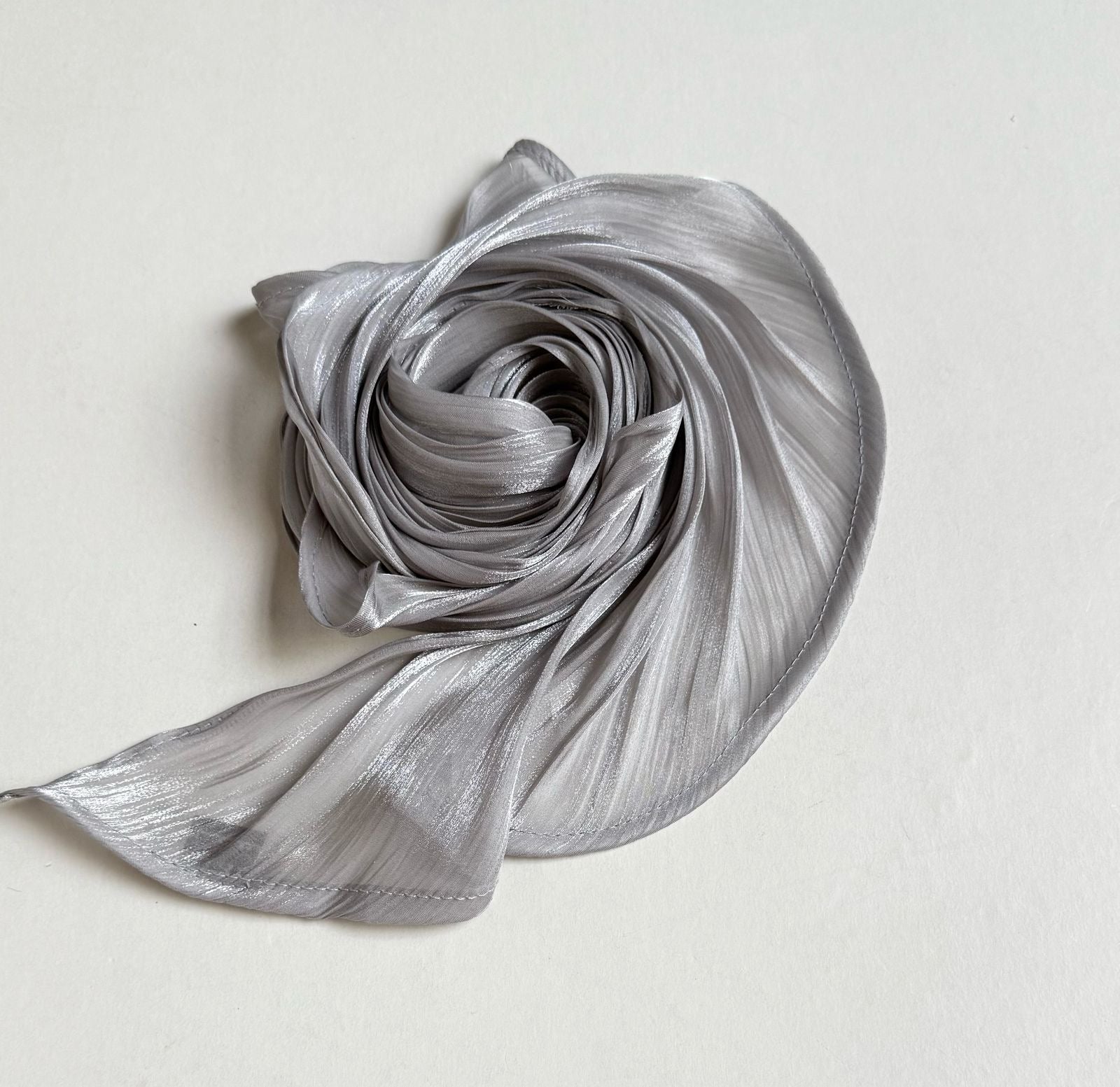 "Introducing the Alma Tuckn Scarf: a stylish and versatile accessory crafted from soft, crinkled chiffon material. This small, elegant scarf is perfect for tucking in with your afternoon and evening outfits, adding a touch of sophistication and giving you a flawless look for any occasion."
