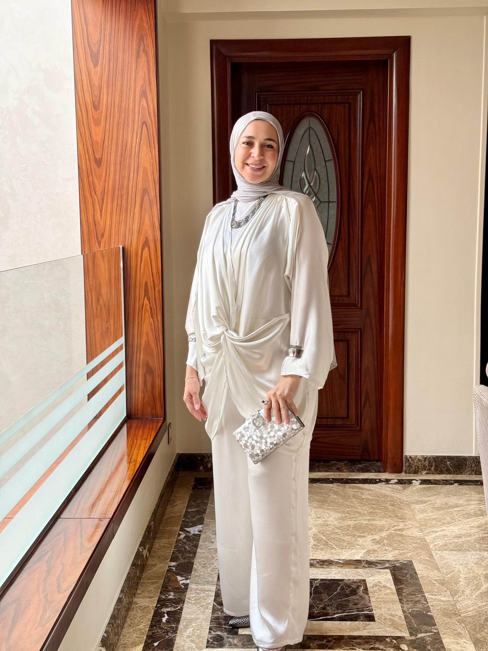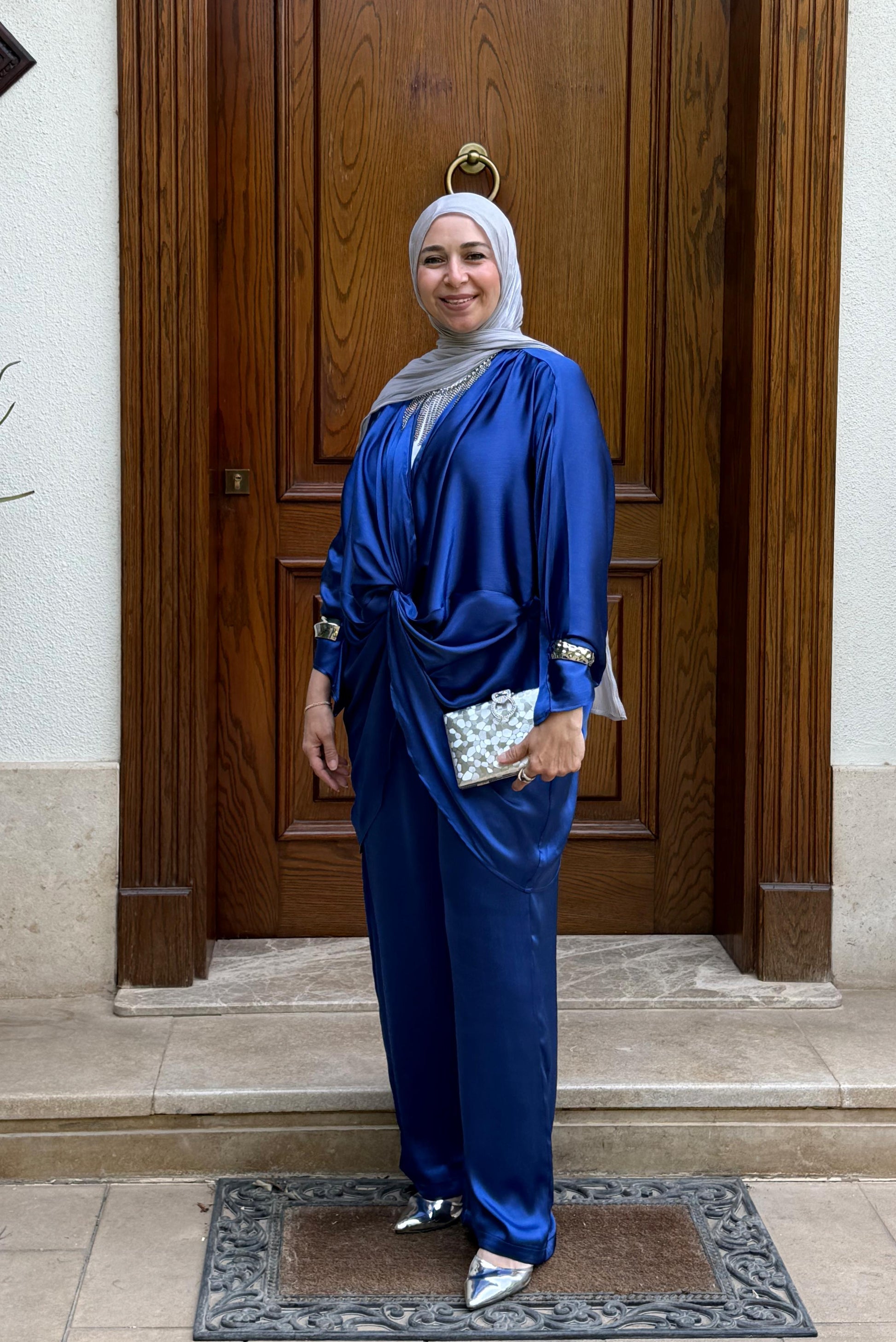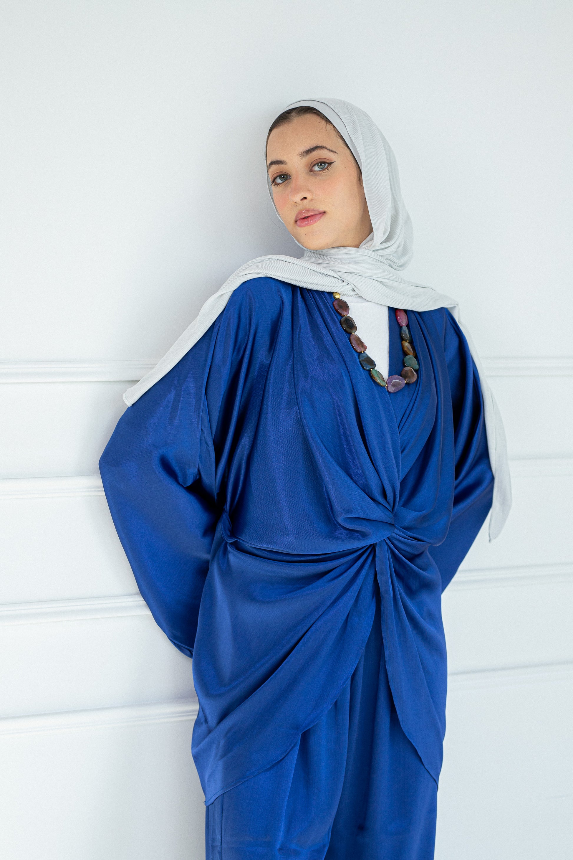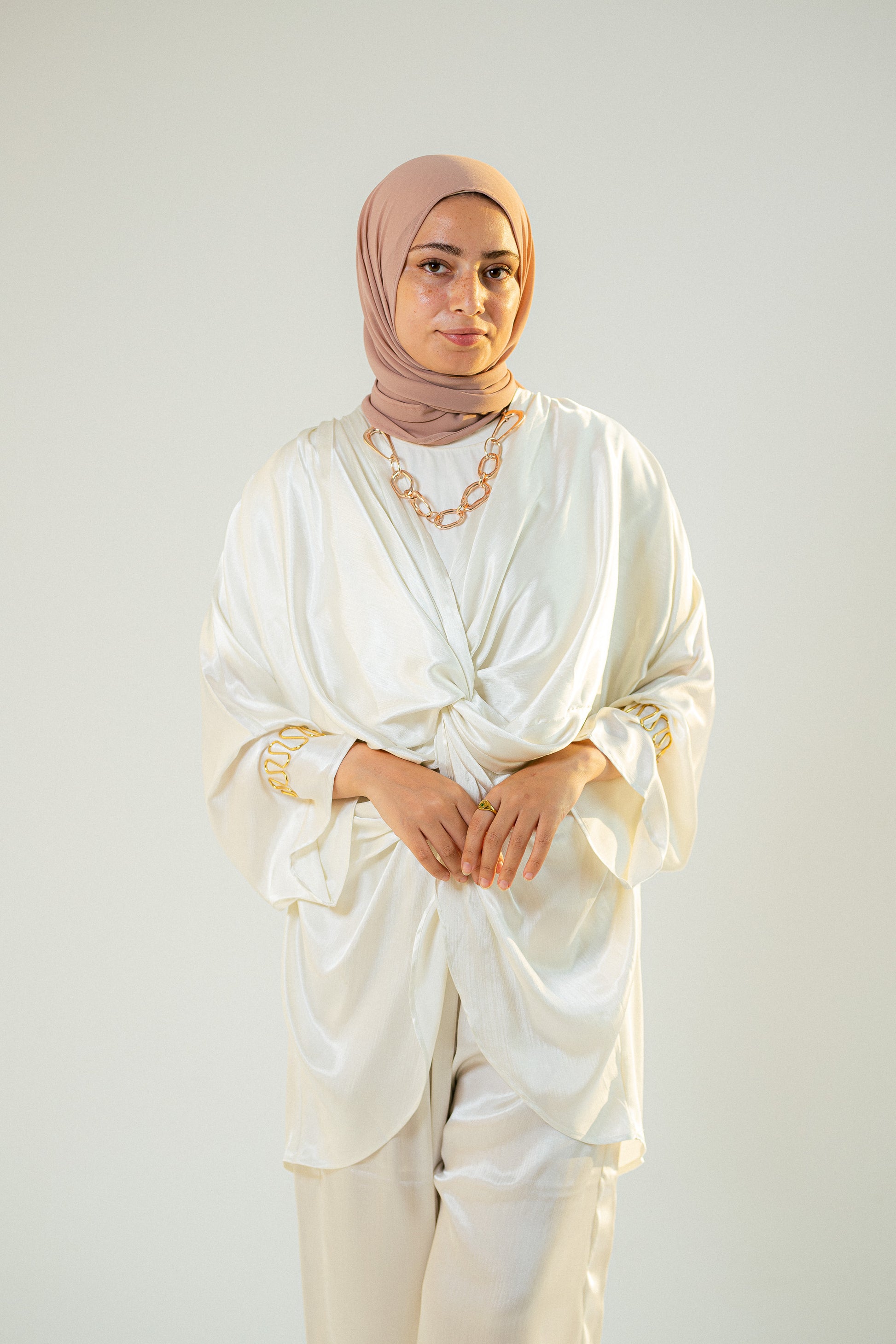 Here’s a chic and polished name + description for your satin set (knot top + wide leg pants) that will work beautifully on your website: