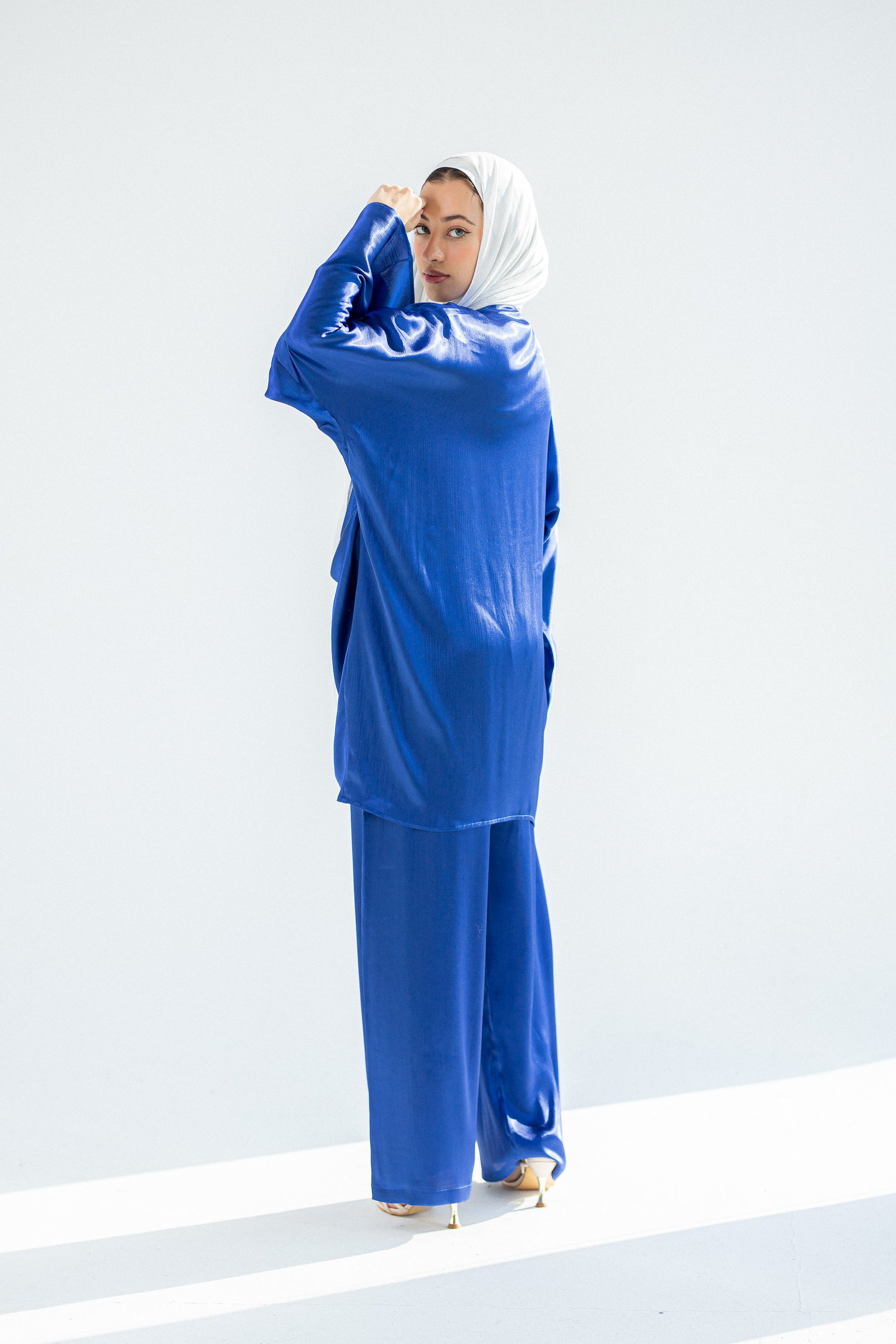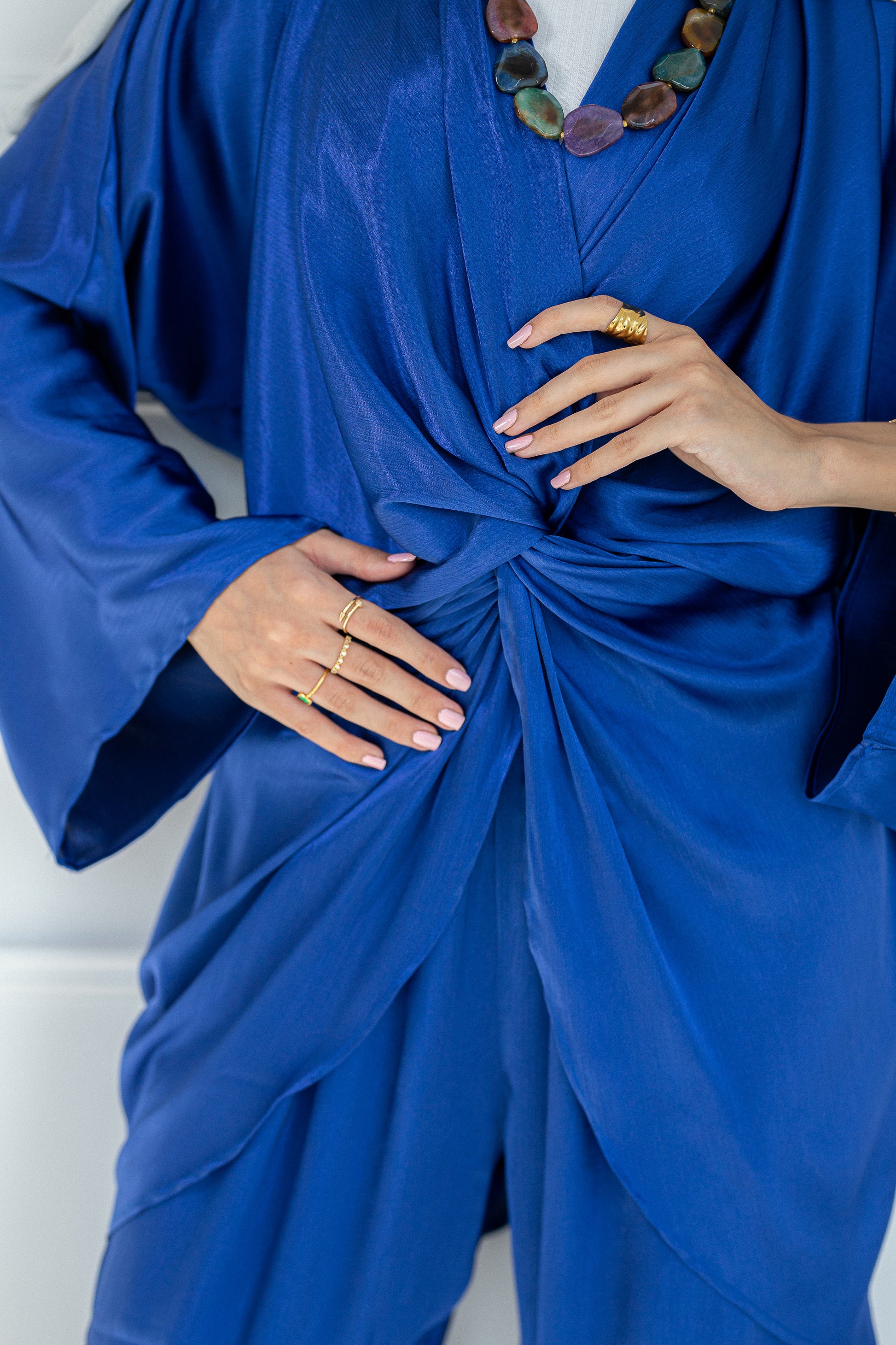 The Serena Set is where fluid luxury meets effortless confidence. This two-piece ensemble features a lustrous satin finish with a flattering wrap-style top accented by a front knot that defines the waist without compromising on comfort. Paired with flowing wide-leg pants, this set is designed to move with grace and make a statement from day to night.