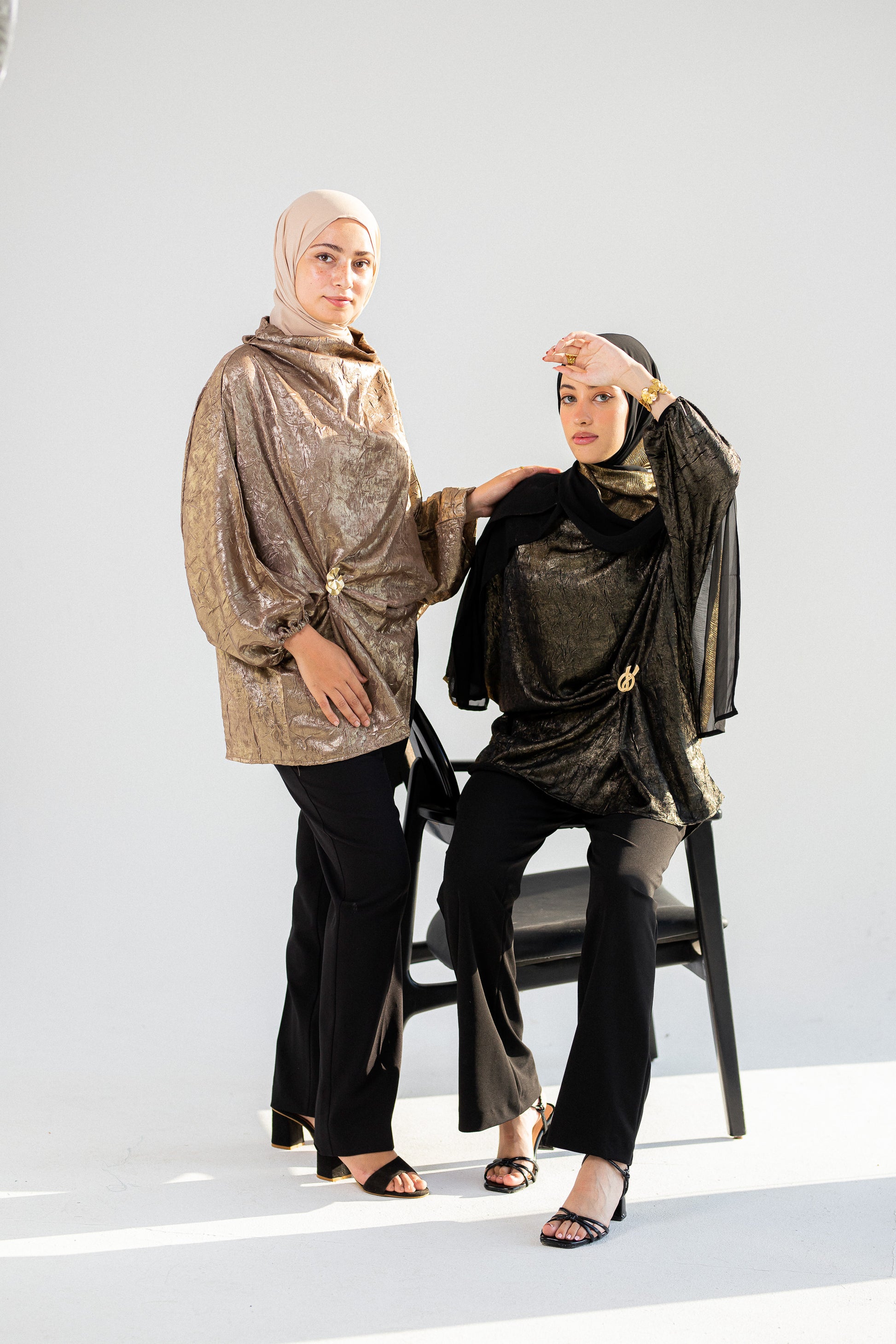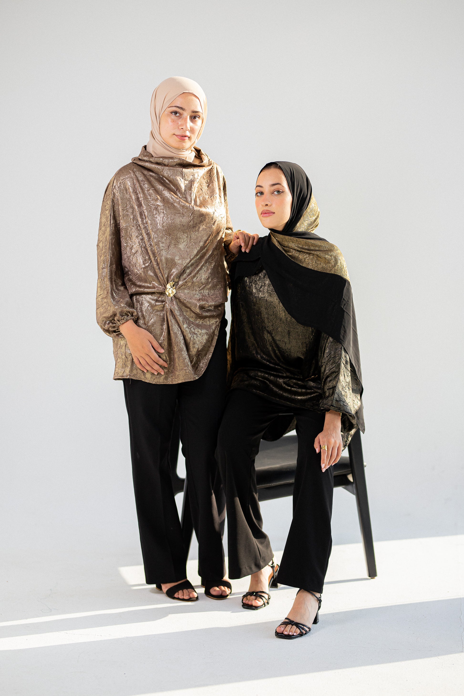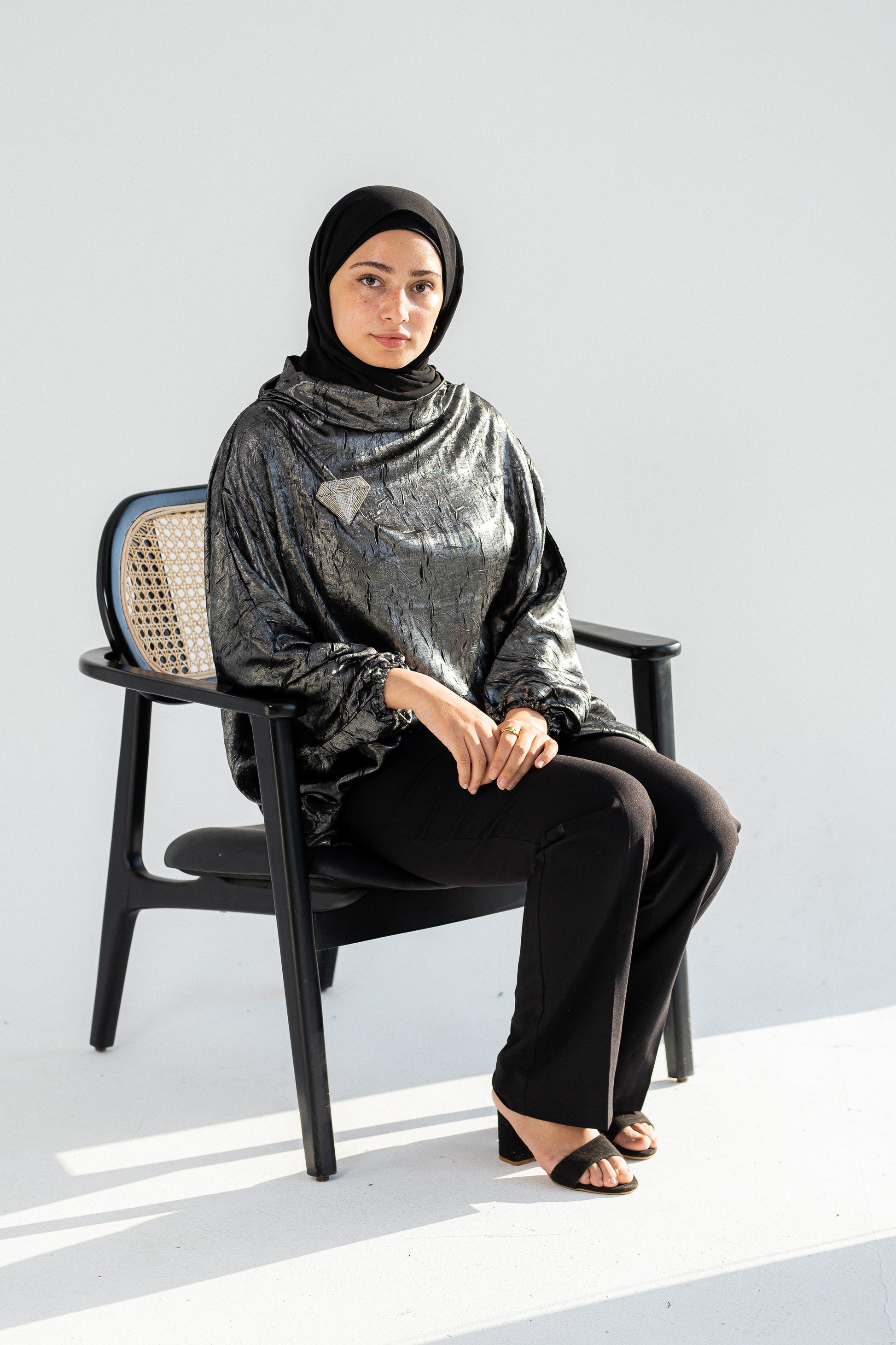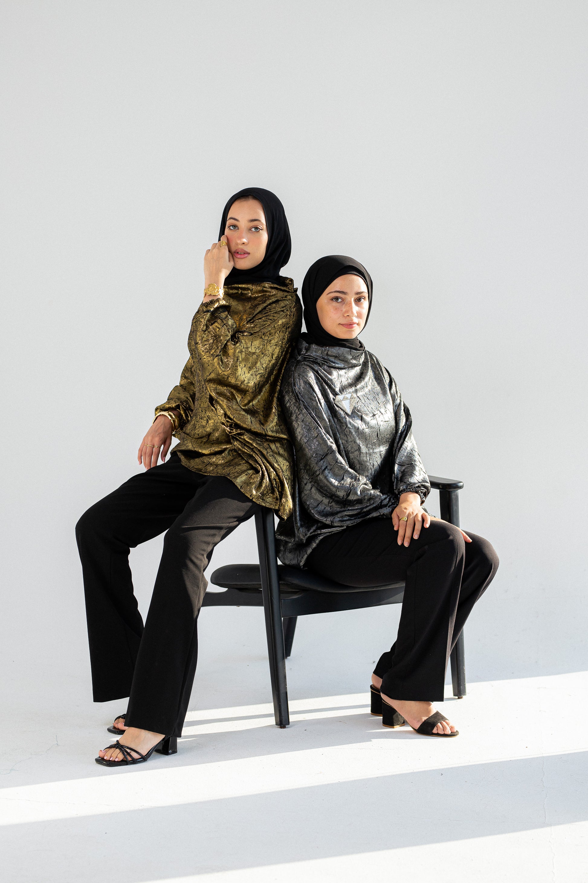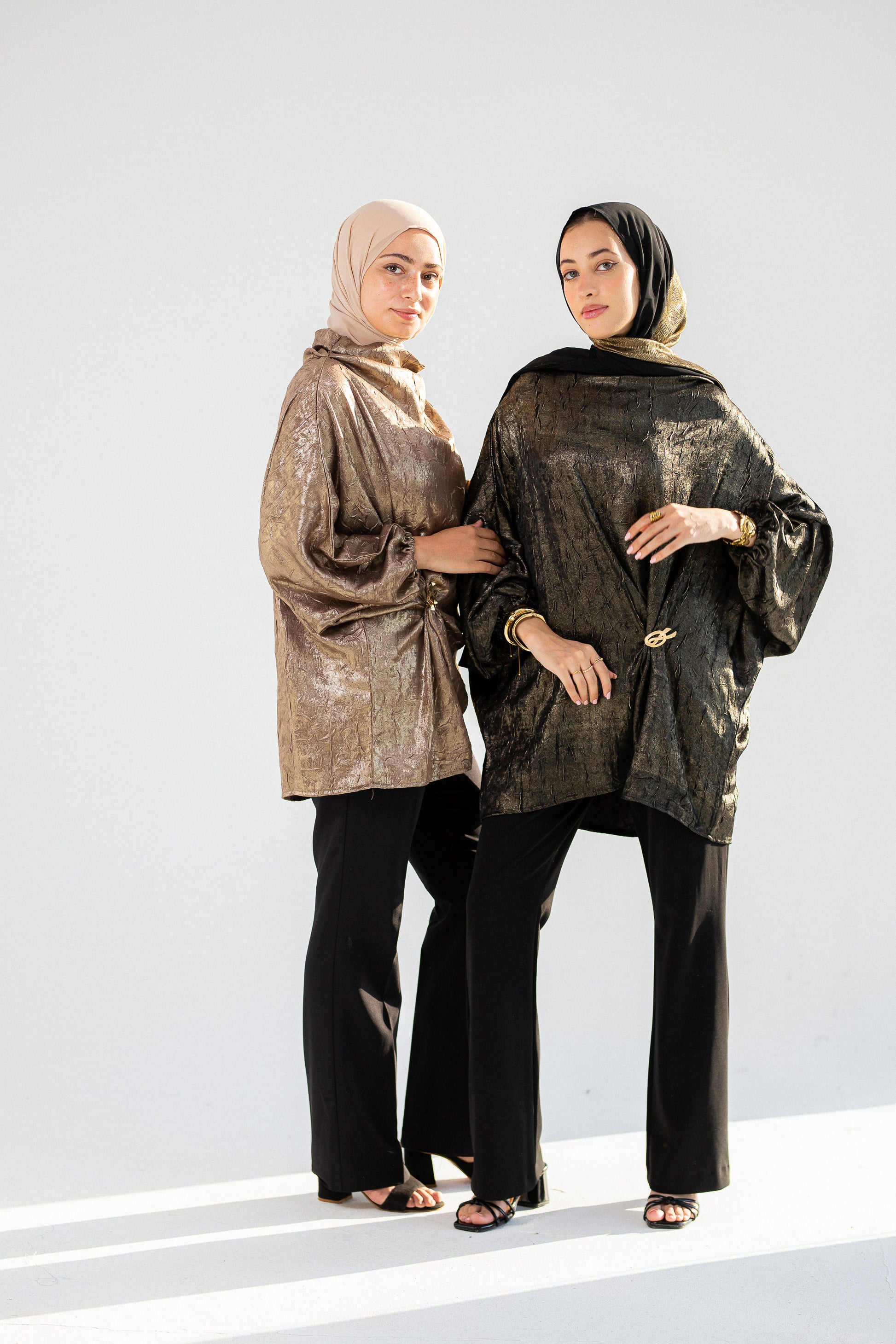 "When comfort meets couture — introducing Velure Flow, the oversized top reimagined. Designed with a lustrous, high-end fabric that catches the light and flows with grace, this piece brings effortless luxury to any event. Whether styled with tailored pants or a sleek skirt, it elevates your presence without trying too hard.
