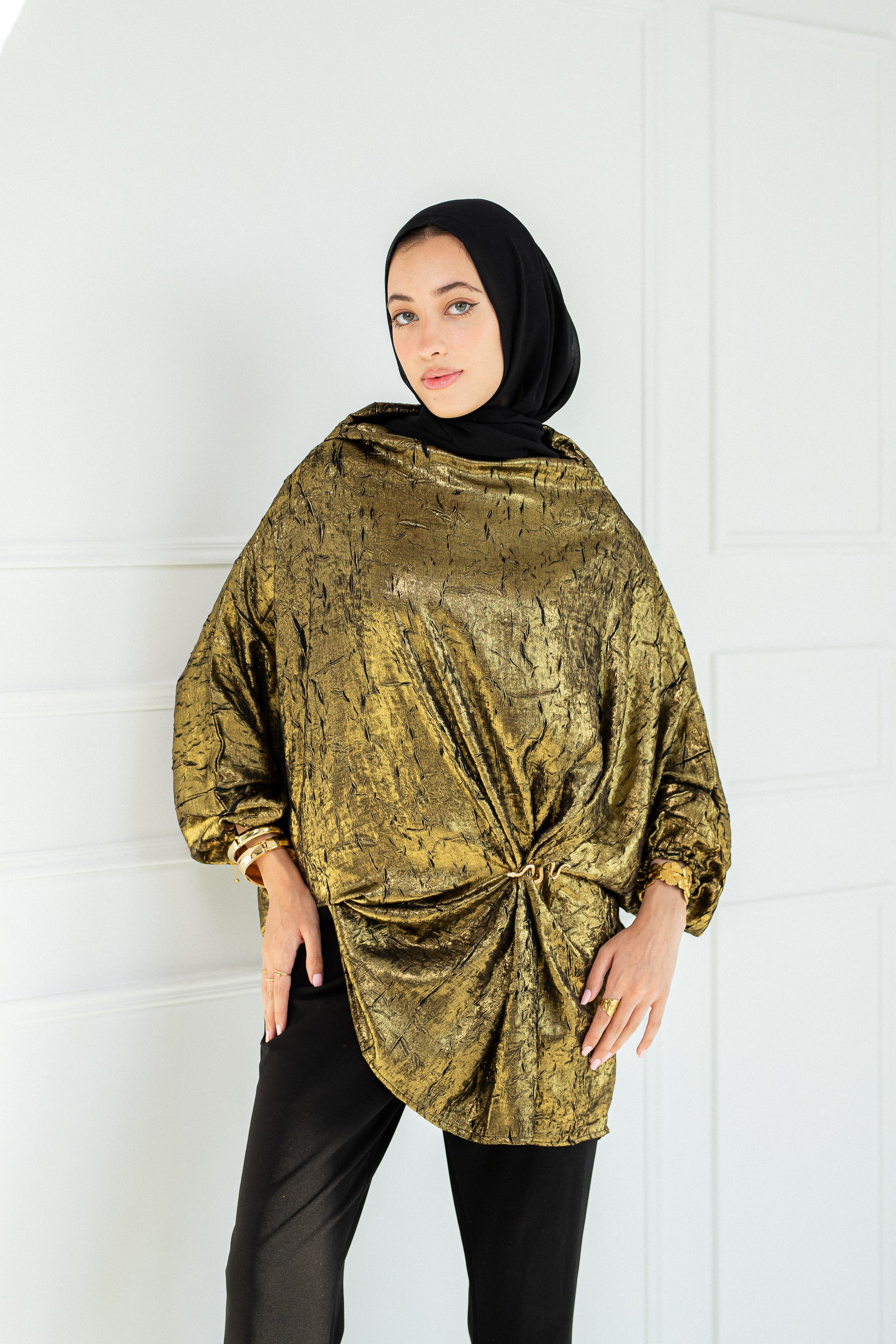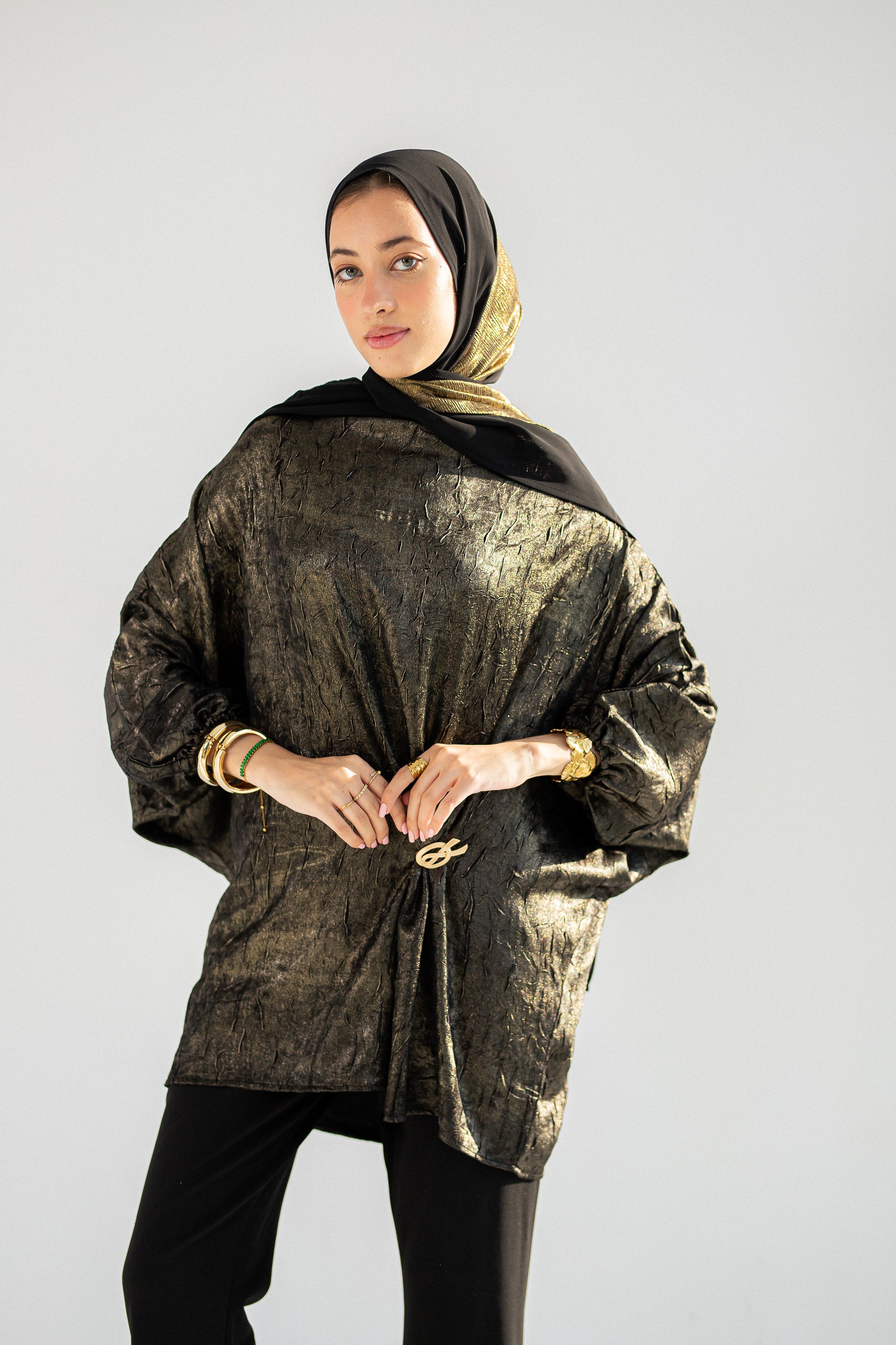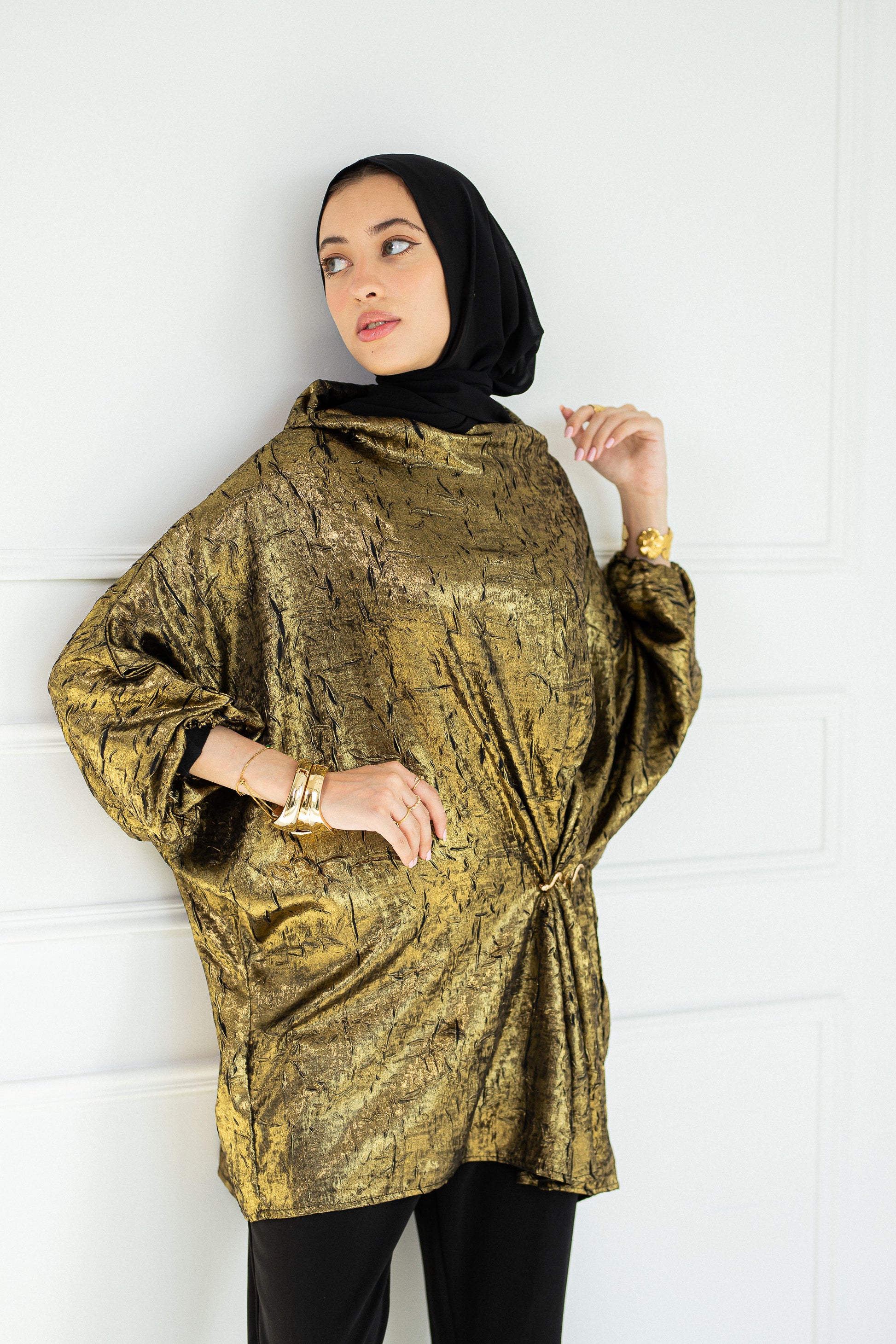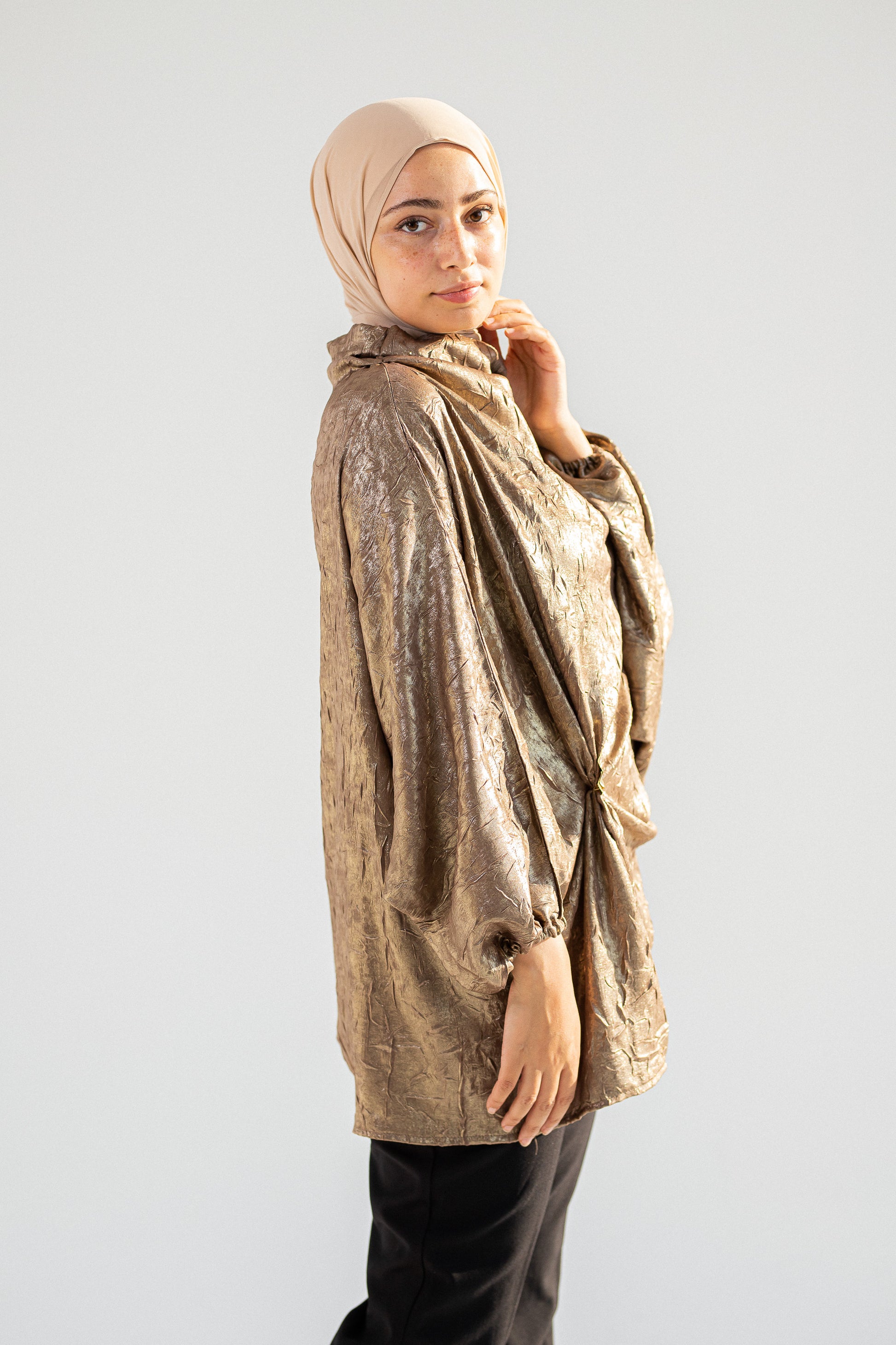 "When comfort meets couture — introducing Velure Flow, the oversized top reimagined. Designed with a lustrous, high-end fabric that catches the light and flows with grace, this piece brings effortless luxury to any event. Whether styled with tailored pants or a sleek skirt, it elevates your presence without trying too hard.