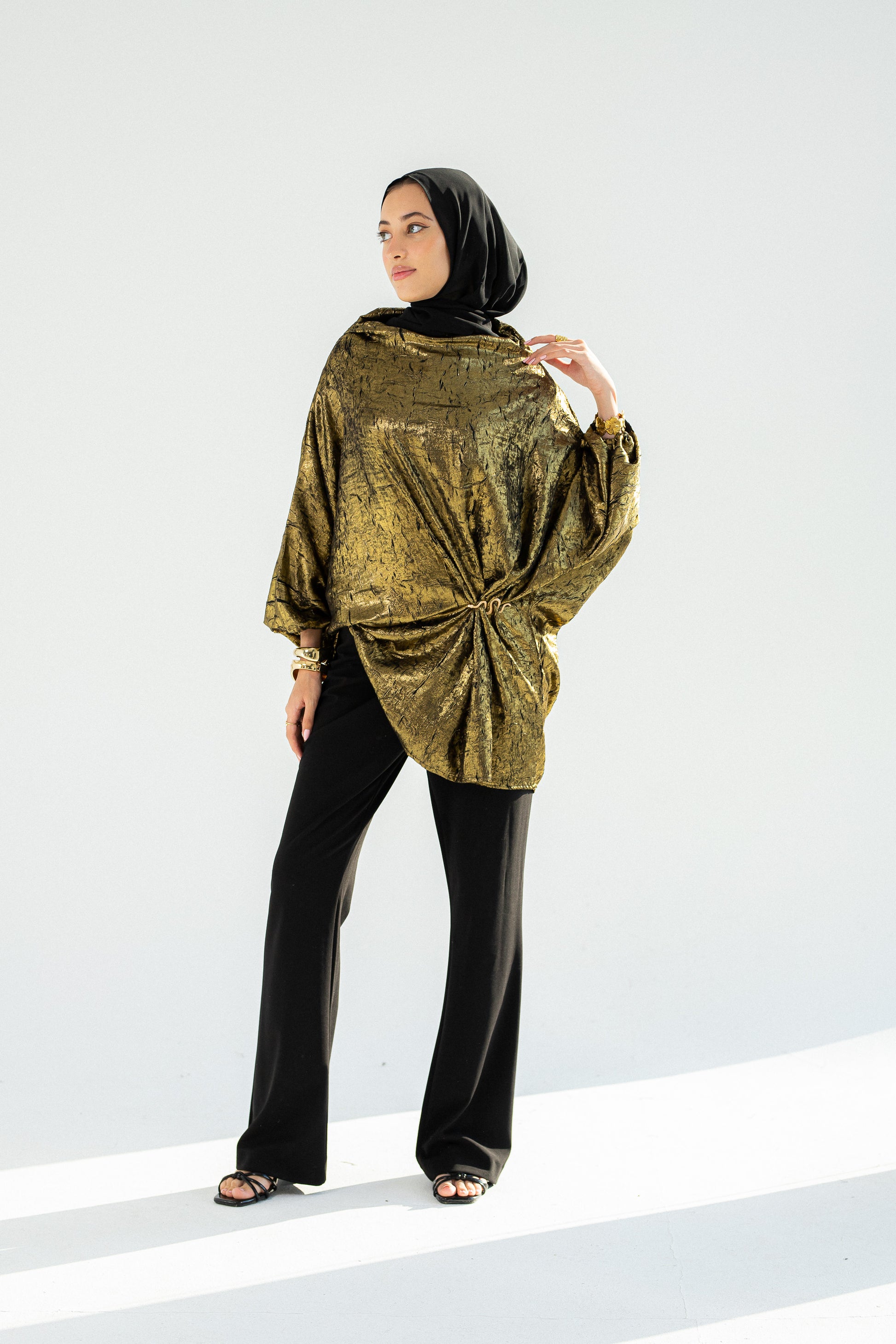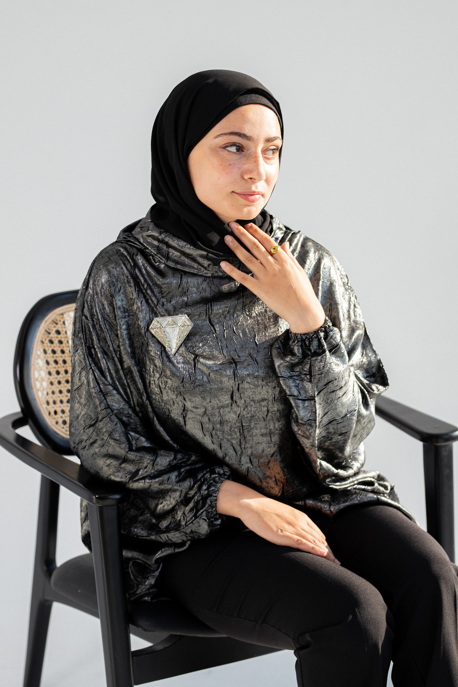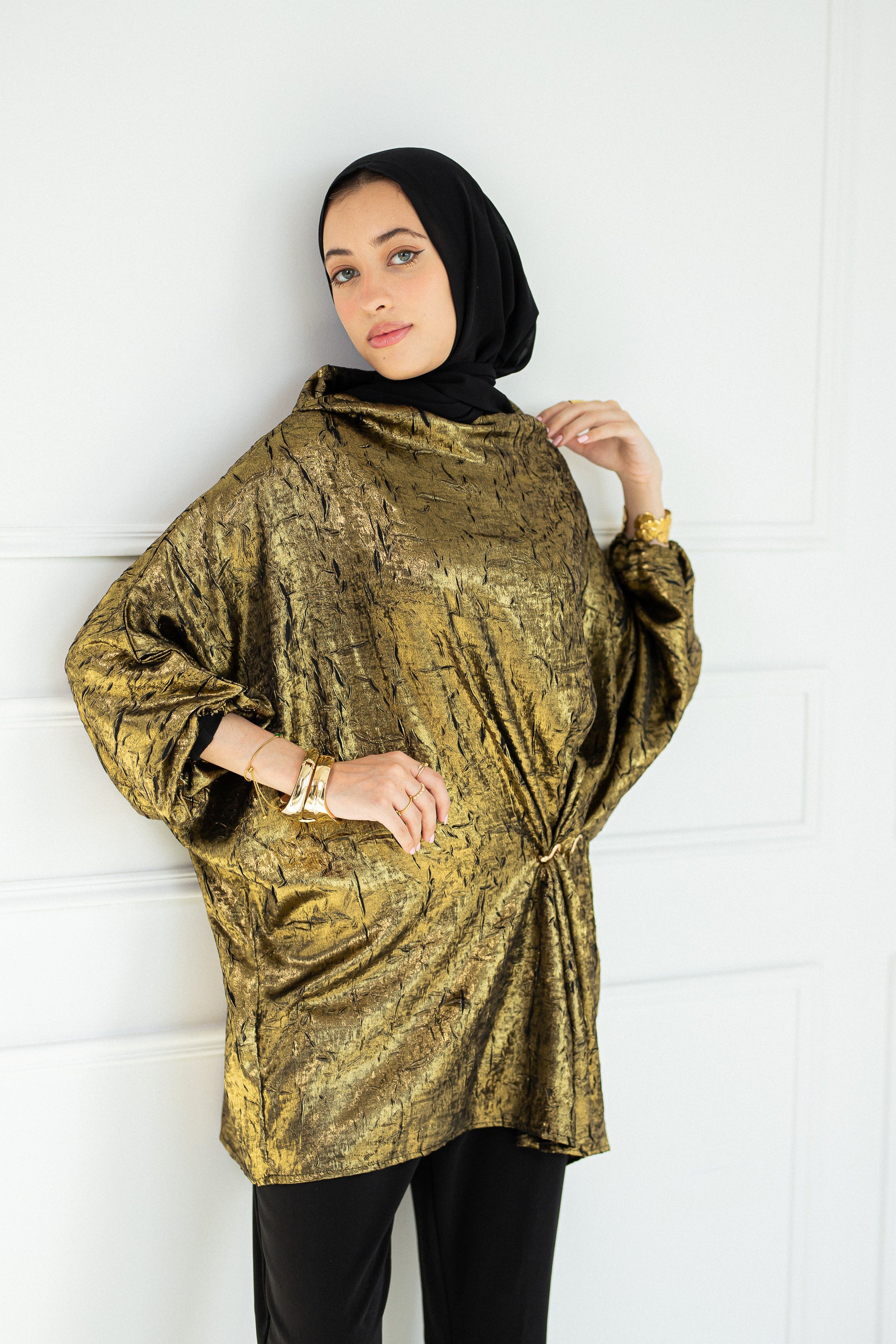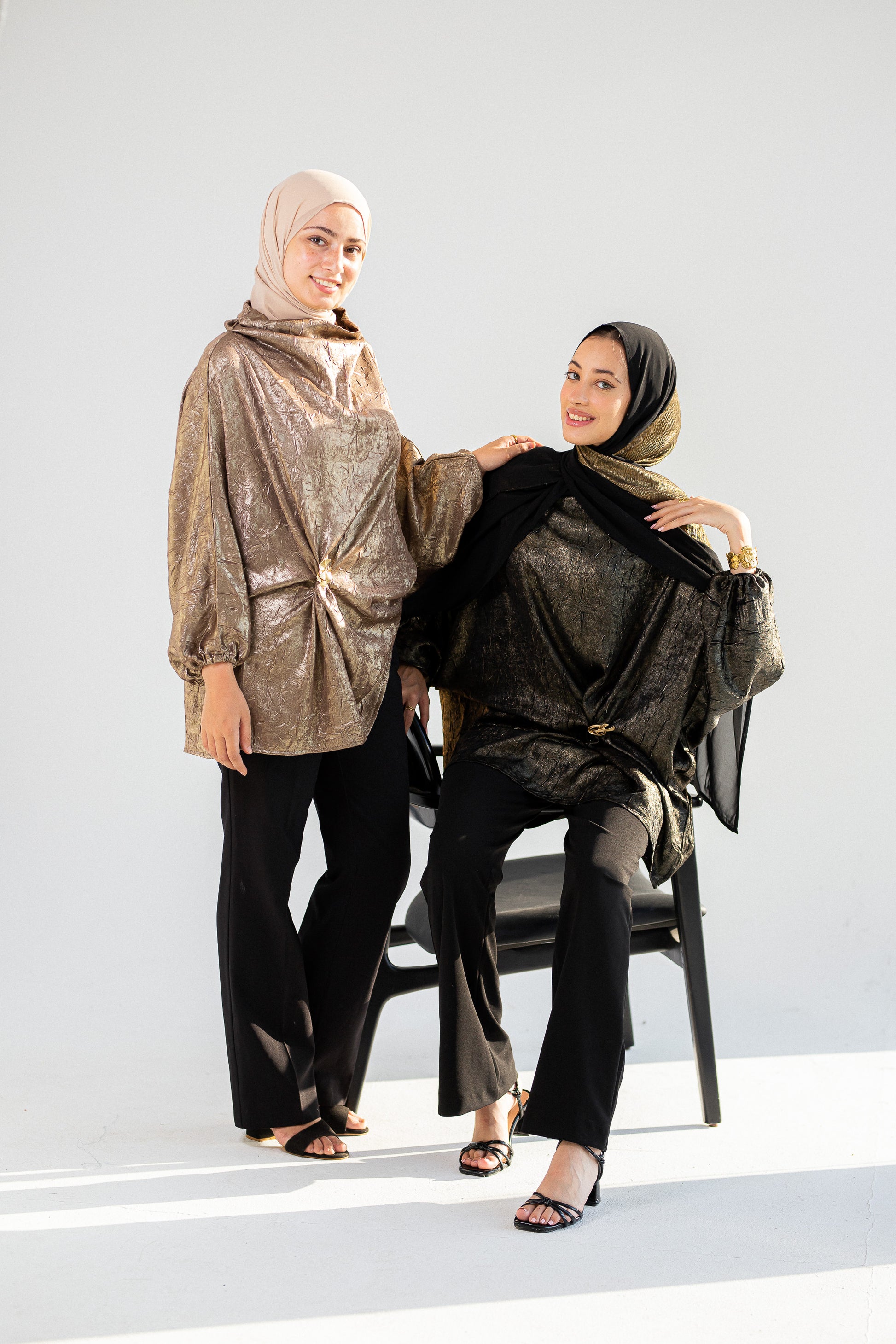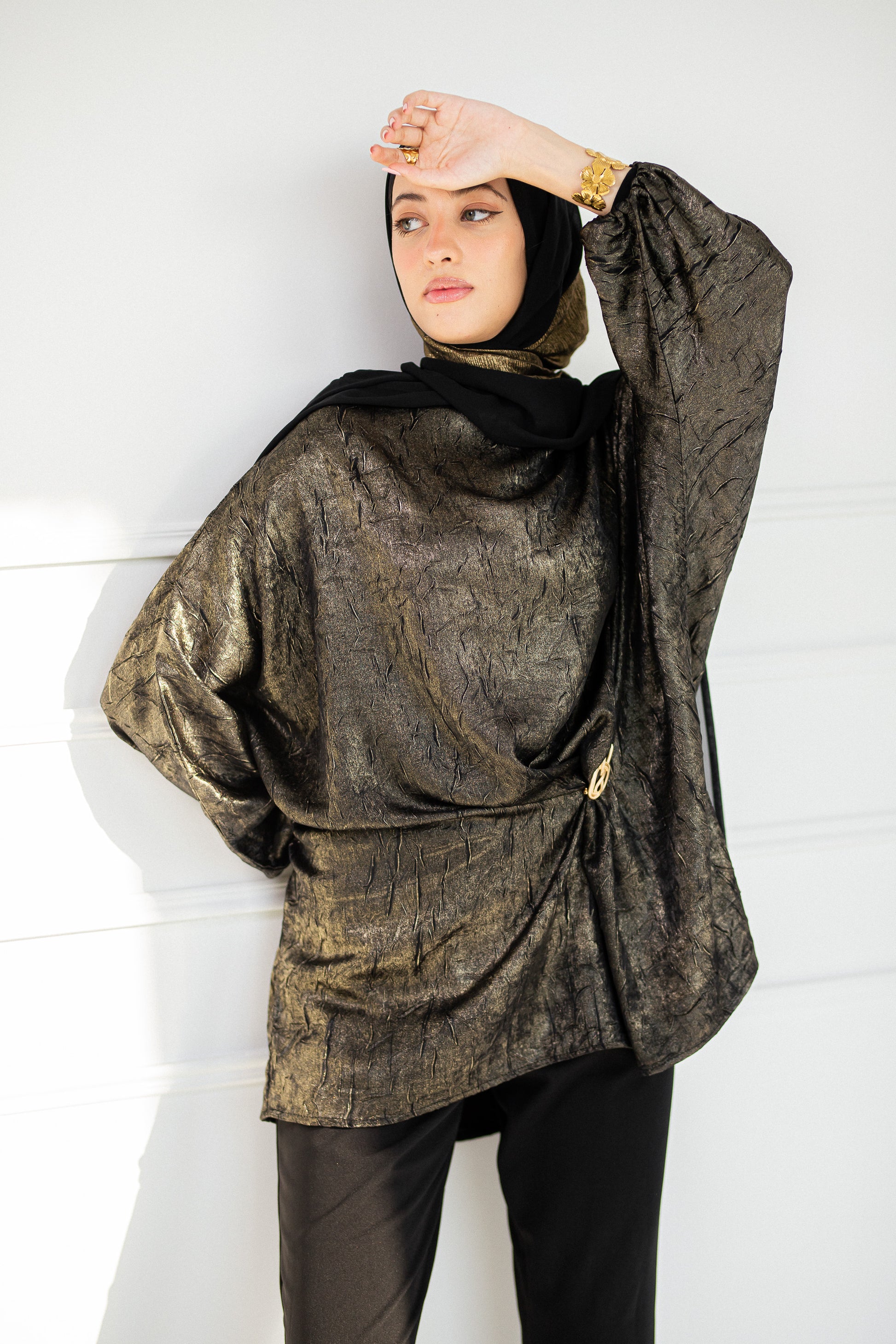 "When comfort meets couture — introducing Velure Flow, the oversized top reimagined. Designed with a lustrous, high-end fabric that catches the light and flows with grace, this piece brings effortless luxury to any event. Whether styled with tailored pants or a sleek skirt, it elevates your presence without trying too hard.