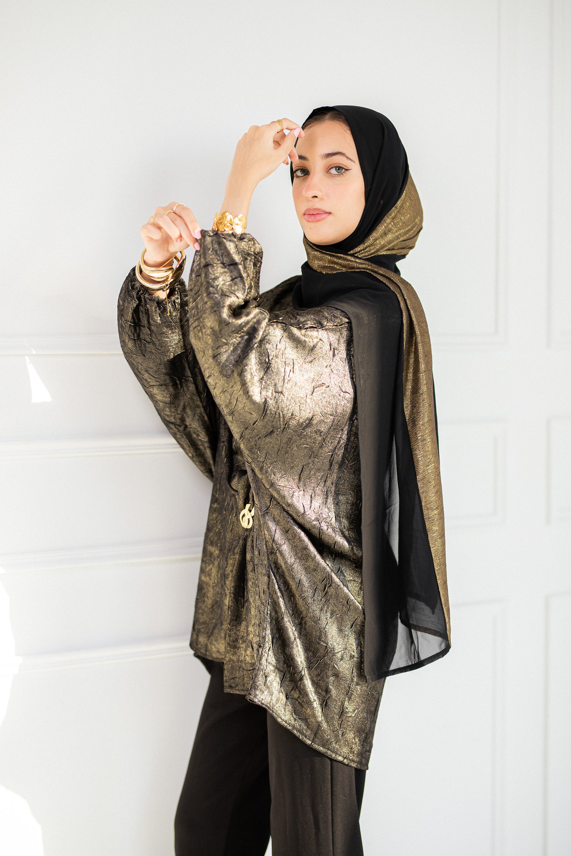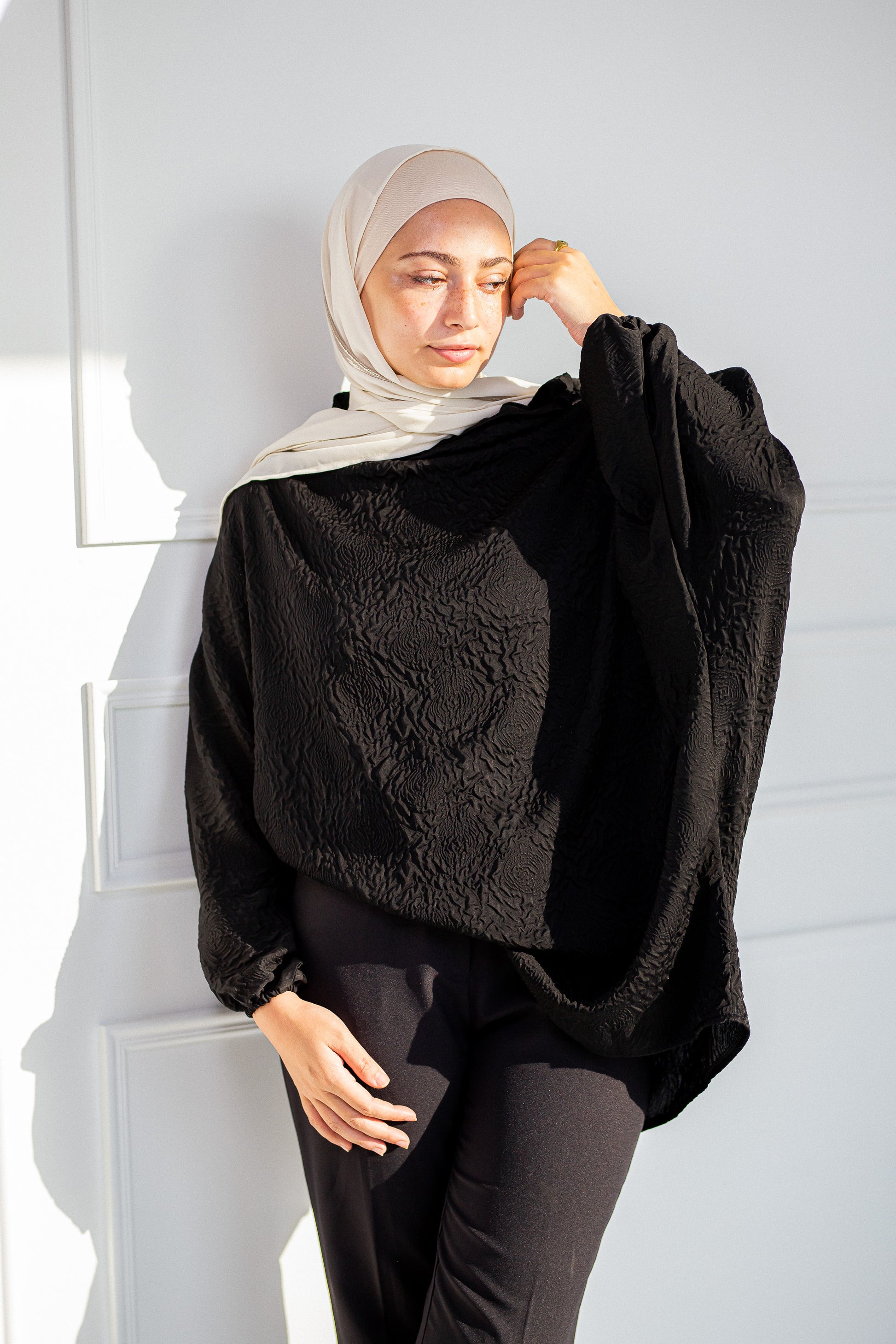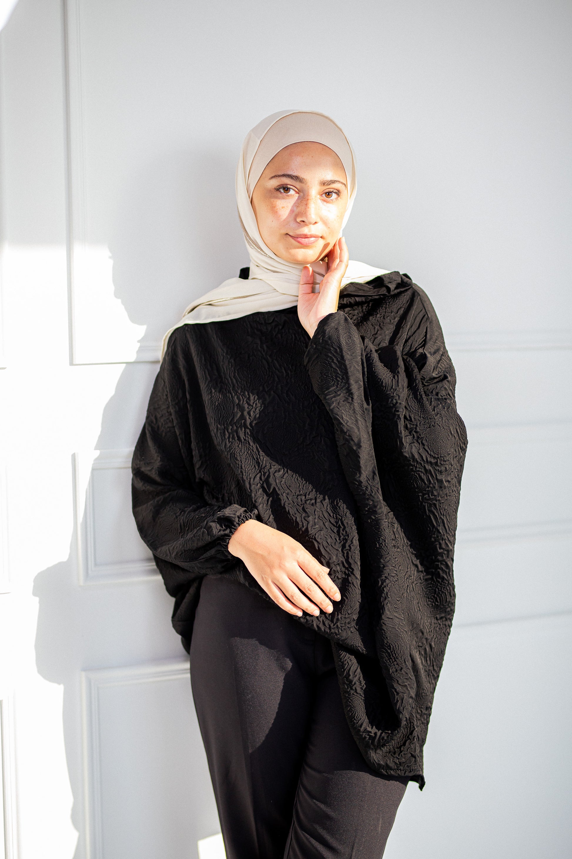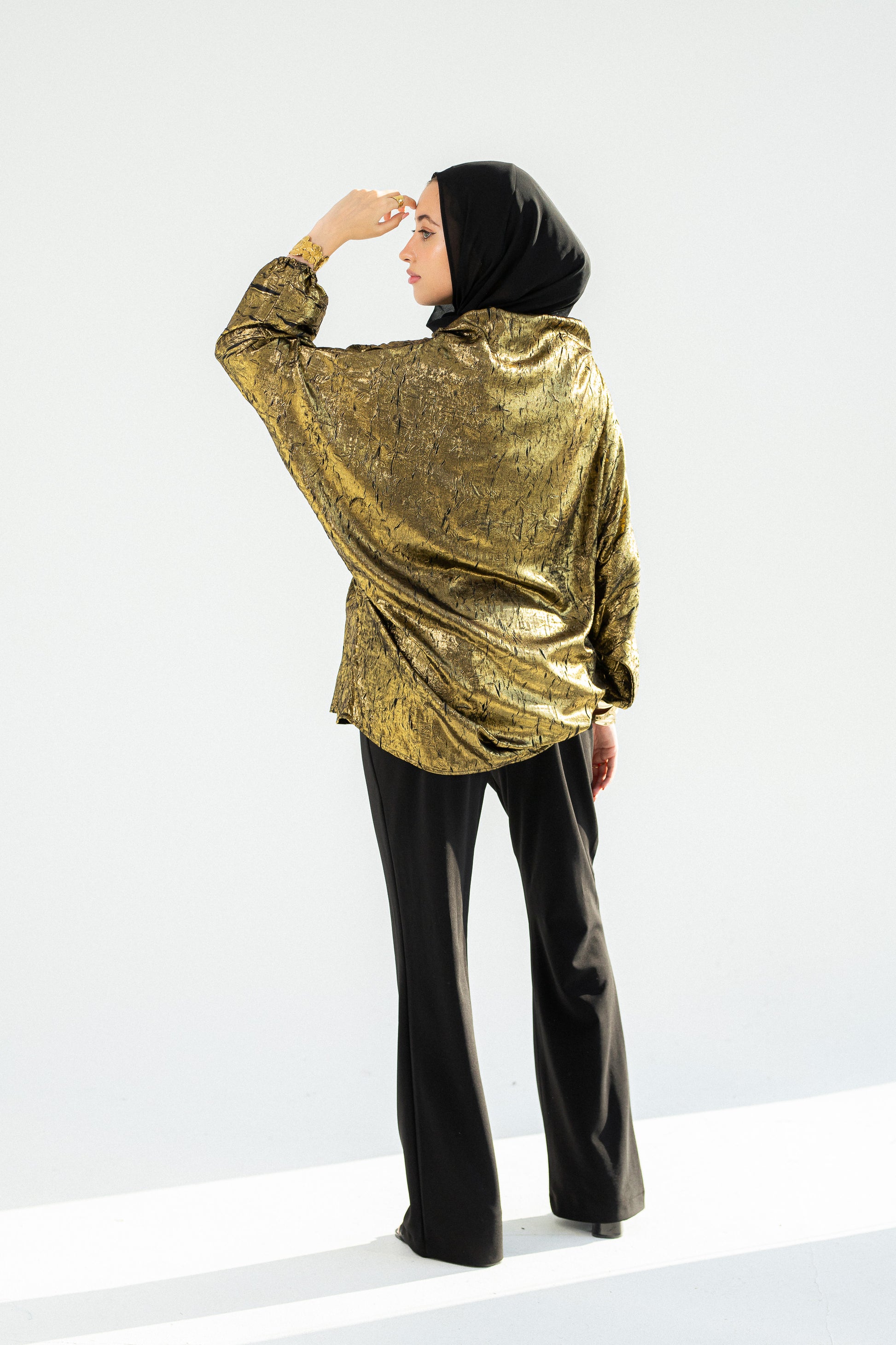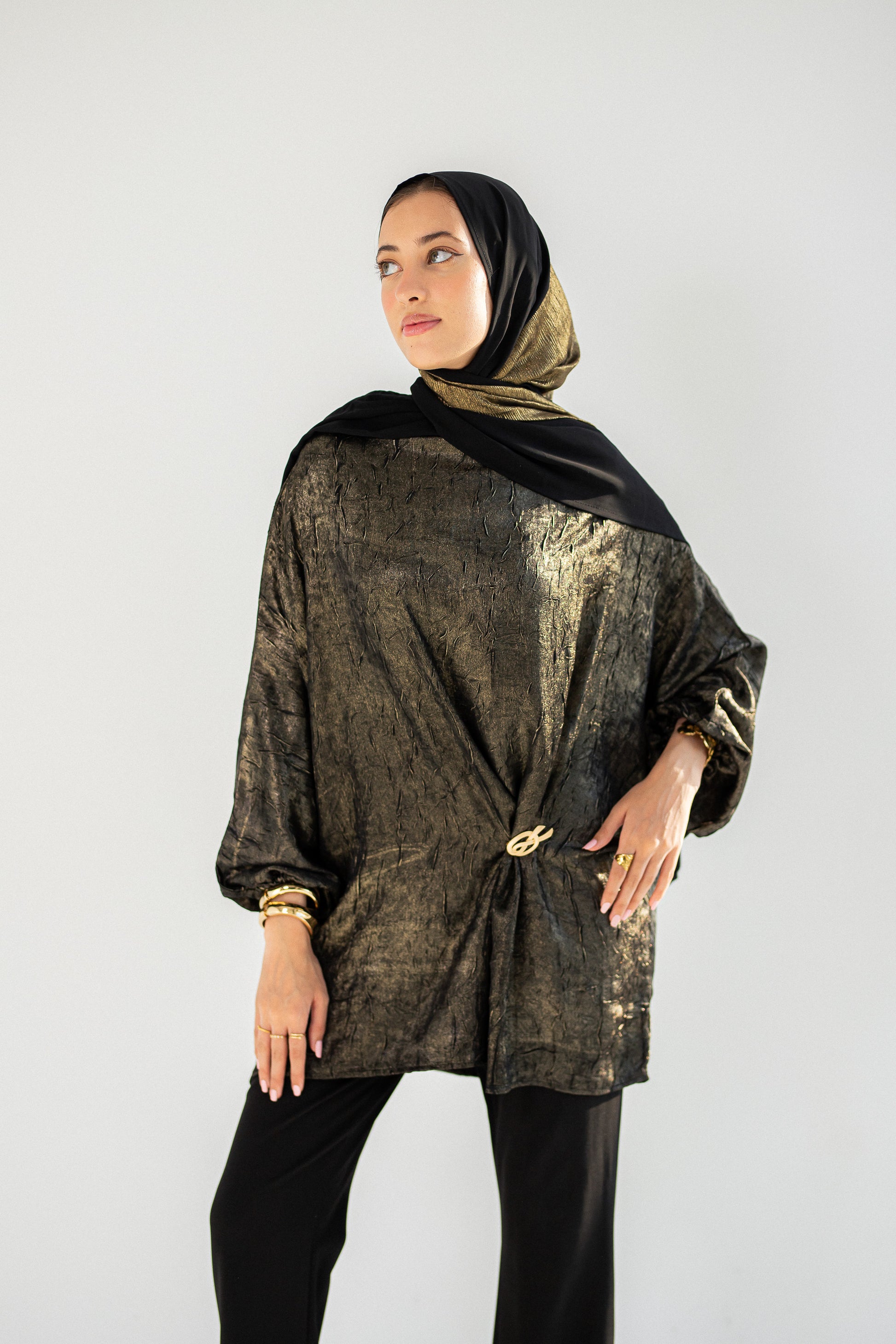 "When comfort meets couture — introducing Velure Flow, the oversized top reimagined. Designed with a lustrous, high-end fabric that catches the light and flows with grace, this piece brings effortless luxury to any event. Whether styled with tailored pants or a sleek skirt, it elevates your presence without trying too hard.